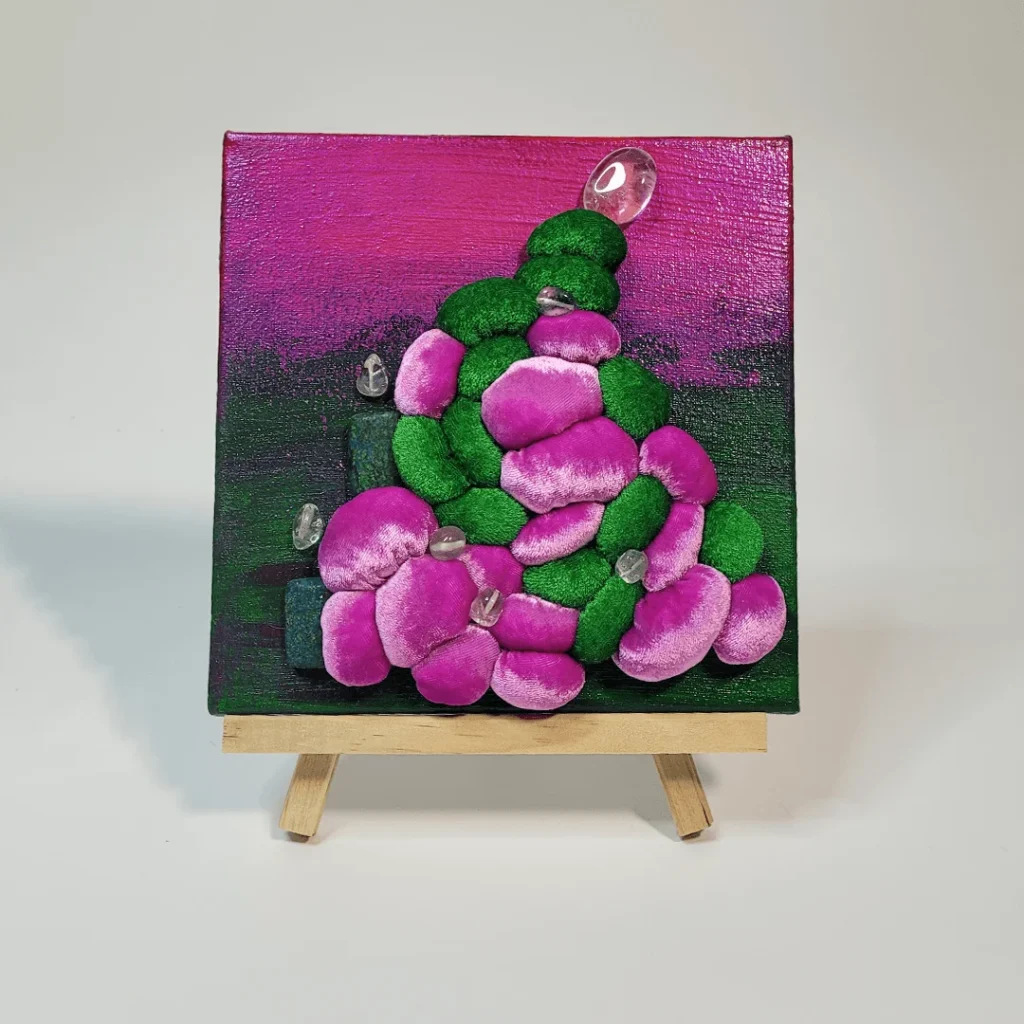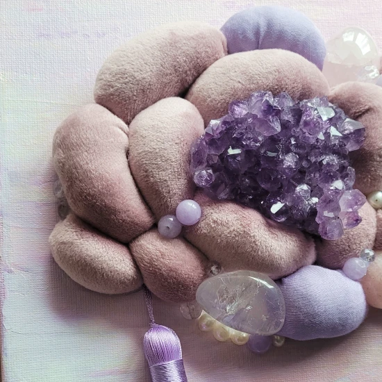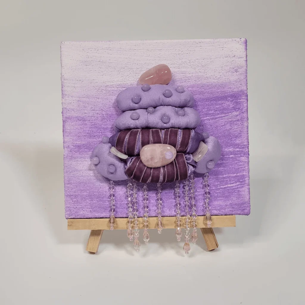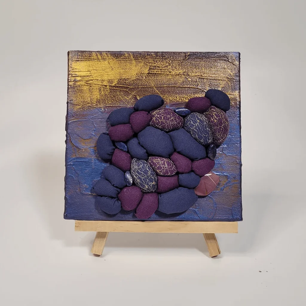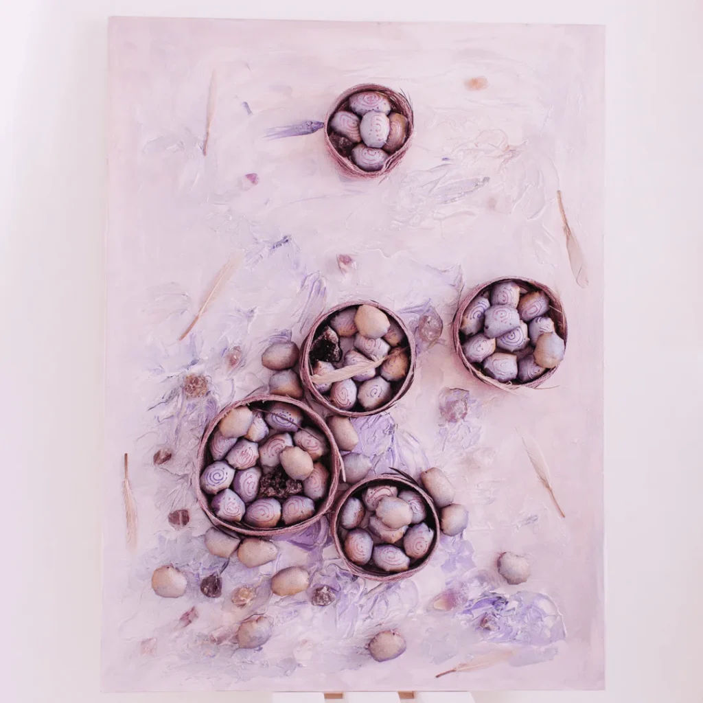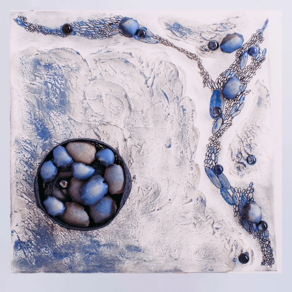 З 2016 року вона створює авторські колажі, поєднуючи тканини, акрил, фактурні матеріали та природні мінерали. Кожна робота — це багатошарова композиція кольору, текстури та сенсу.